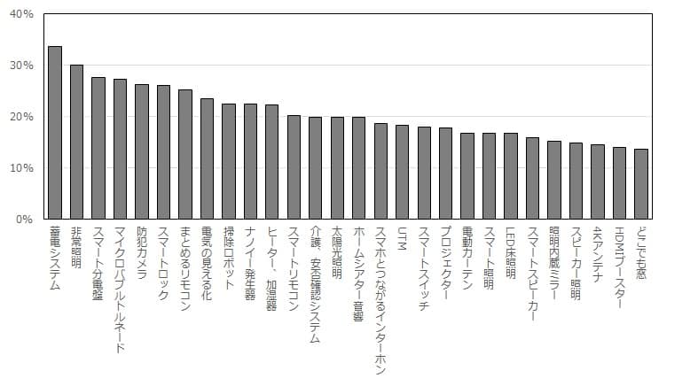 ●更には『スマートロック(スマホで家の施錠・解錠を確認できる)』、『防犯カメラ』なども上位に挙がっている。