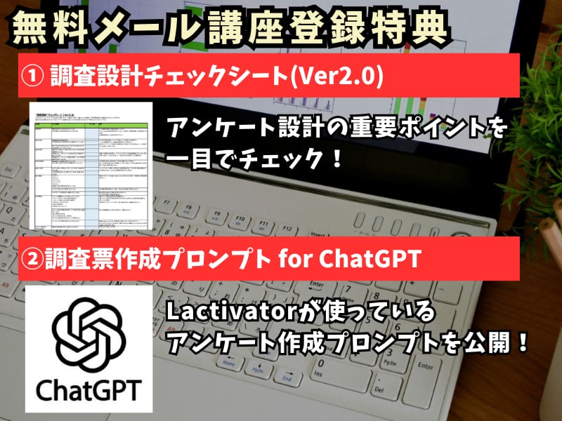を紹介しつつ、アンケートを設計する際のコツを理解していただきます。