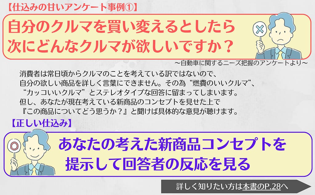 ということで、この本ではマーケティングリサーチの中でも一番オーソドックスな手法である『アンケート調査』にスポットを当て、