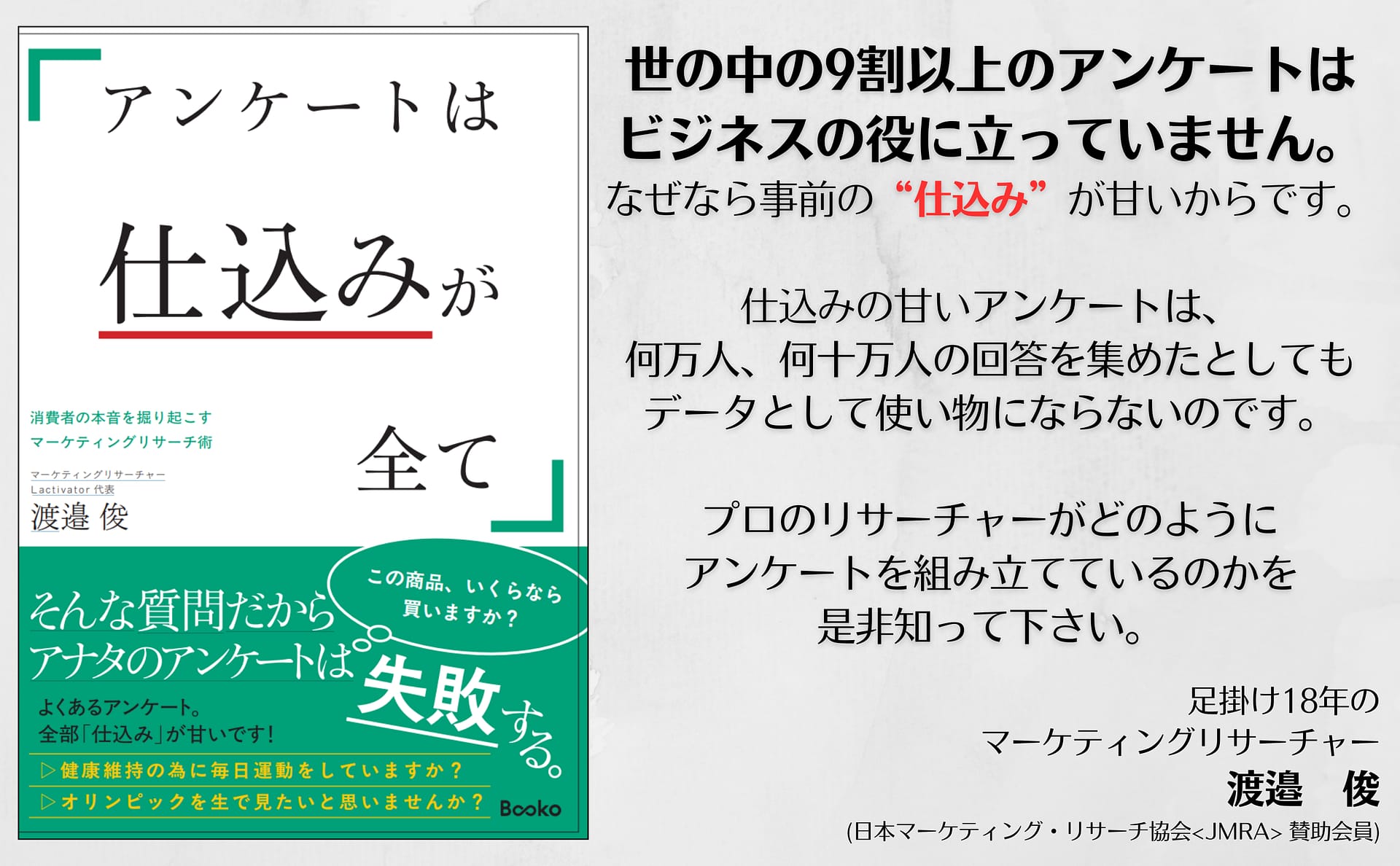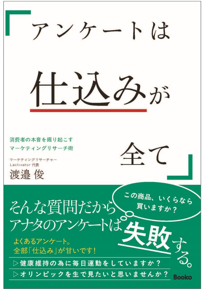 2025年2月26日(水)、Lactivator代表:渡邉 俊の著書『アンケートは仕込みが全て』がBooko出版より発売されます。